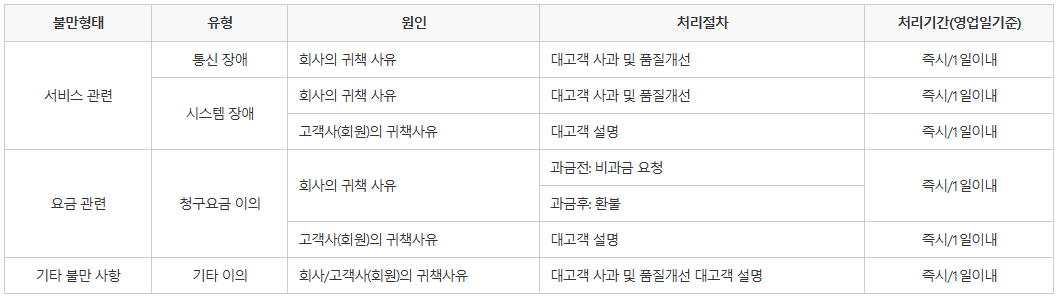 나. 서비스 장애 발생 시에는 재충전으로 보상처리